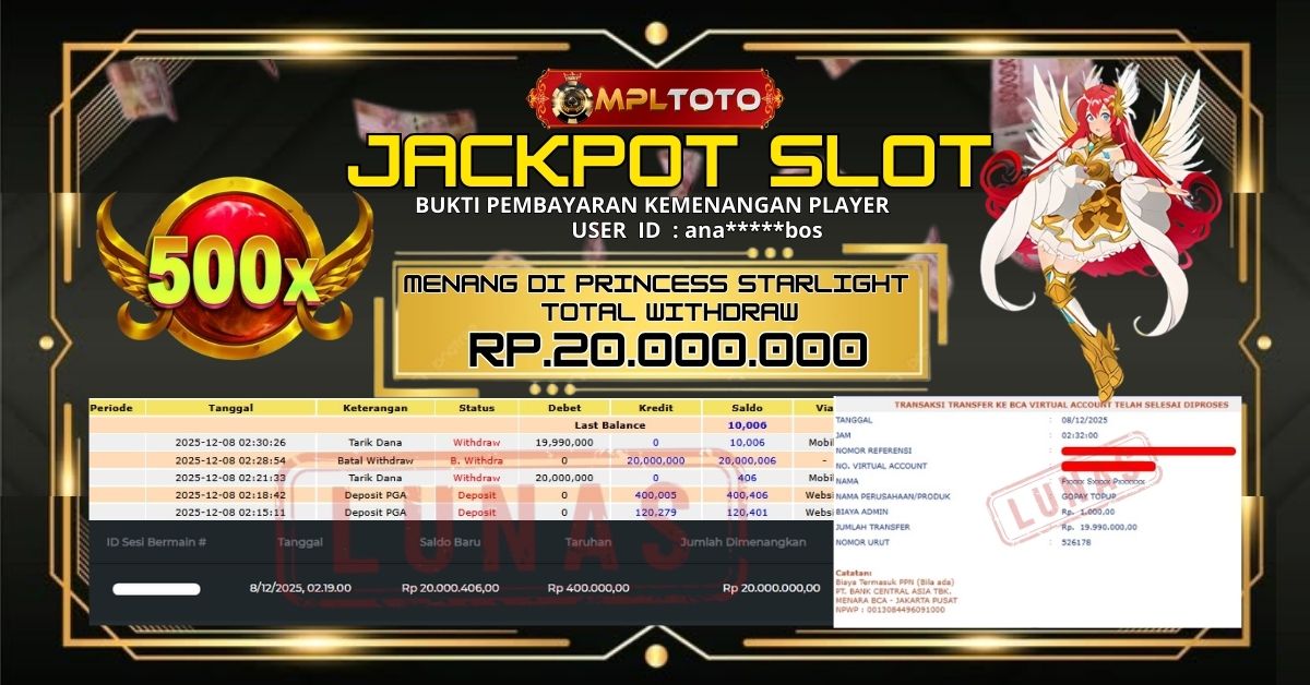 Selamat kepada Player setia MPLTOTO Userid : BILXXXX12 Jackpot 52 JUTA di game SLOT STARLIGHT PRINCES. AYO DAFTAR SEKARANG JUGA DAN RASAKAN SENSASI MAXWIN BERMAIN DI MPLTOTO.COM SEKARANG JUGA